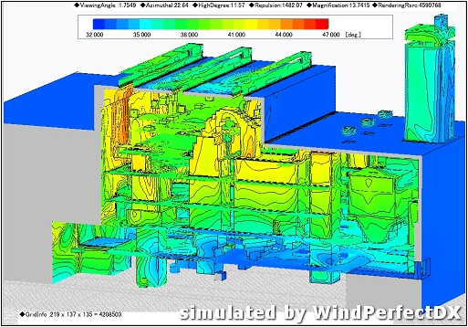全面性的進行環境模擬,評估空調、換氣扇的位置及大小。高溫機械四周及原先惡劣的熱環境場所,皆達到明顯改善。