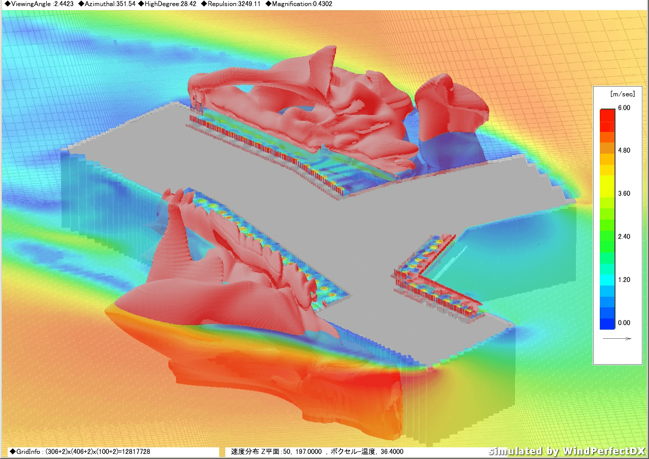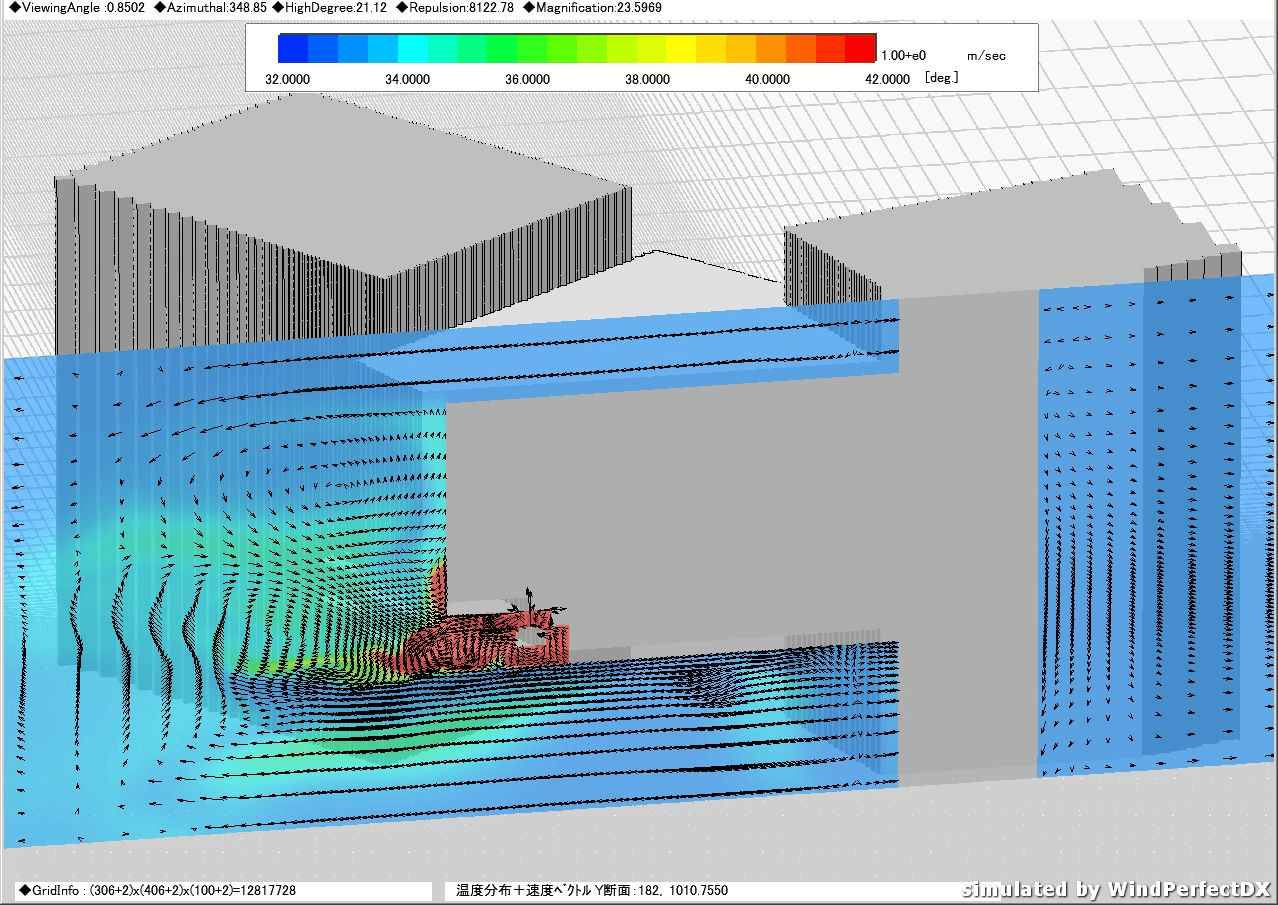 受風場、日照、材質導熱與綠化模擬與評價,給予建築設計方案的改善建議。空氣溫度熱量來源主要為太陽幅射經地面吸收後傳至空氣之中,藉由模擬太陽幅射及風場流動對基地環境形成的溫度場做分析,並給予建築設計方案的改善建議。