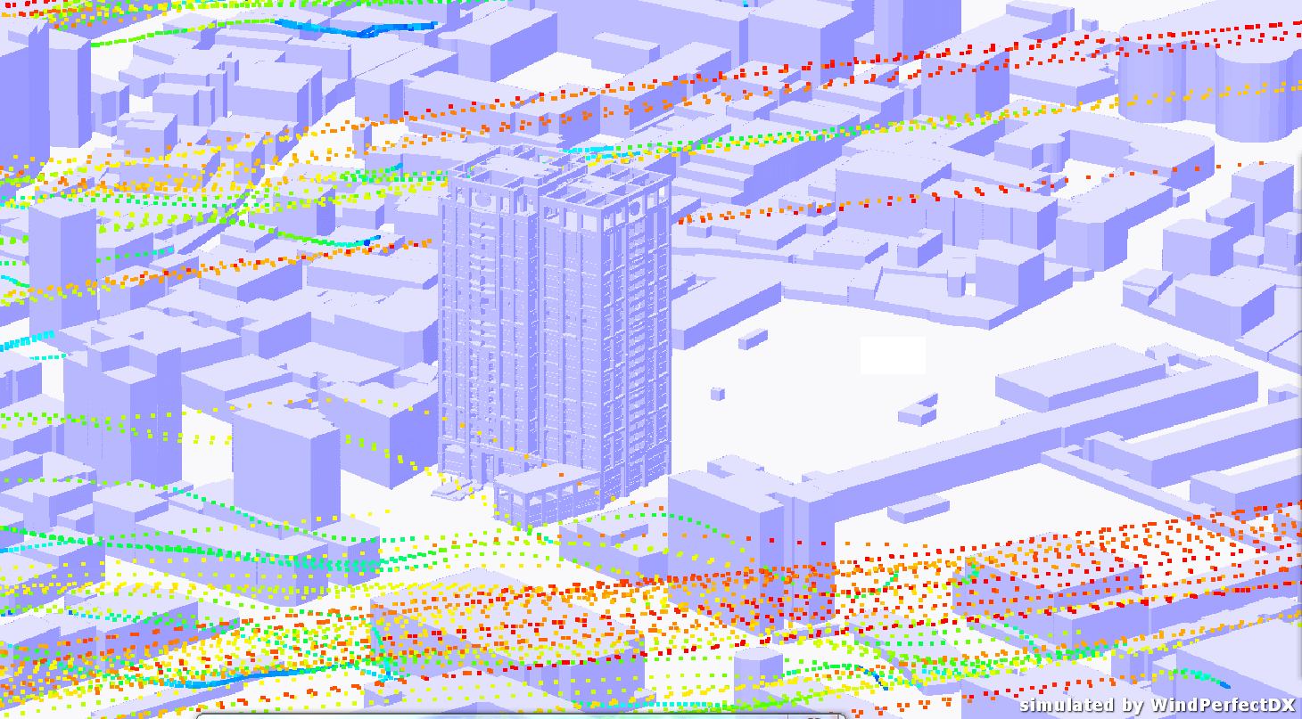 本文討論的城市問題是污染物擴散,屬於室外風環境,高層污染物擴散損壞建築物本身、影響周邊建築物和樓頂直升飛機場的使用,通過模擬分析調整煙囪位置能夠改善這些情況。本案使用的是WindPerfectDX的風環境解析功能,解析物件是獨棟高層建築物,模擬分析高層污染物擴散需注意:1. 高層風速較高;2. 高層亂流現象;3. 煙囪排出的氣體溫度高。